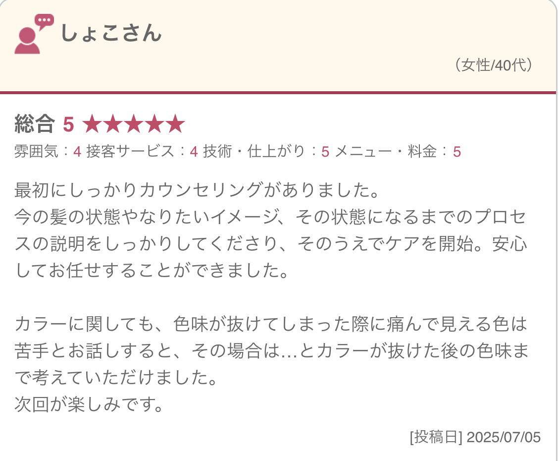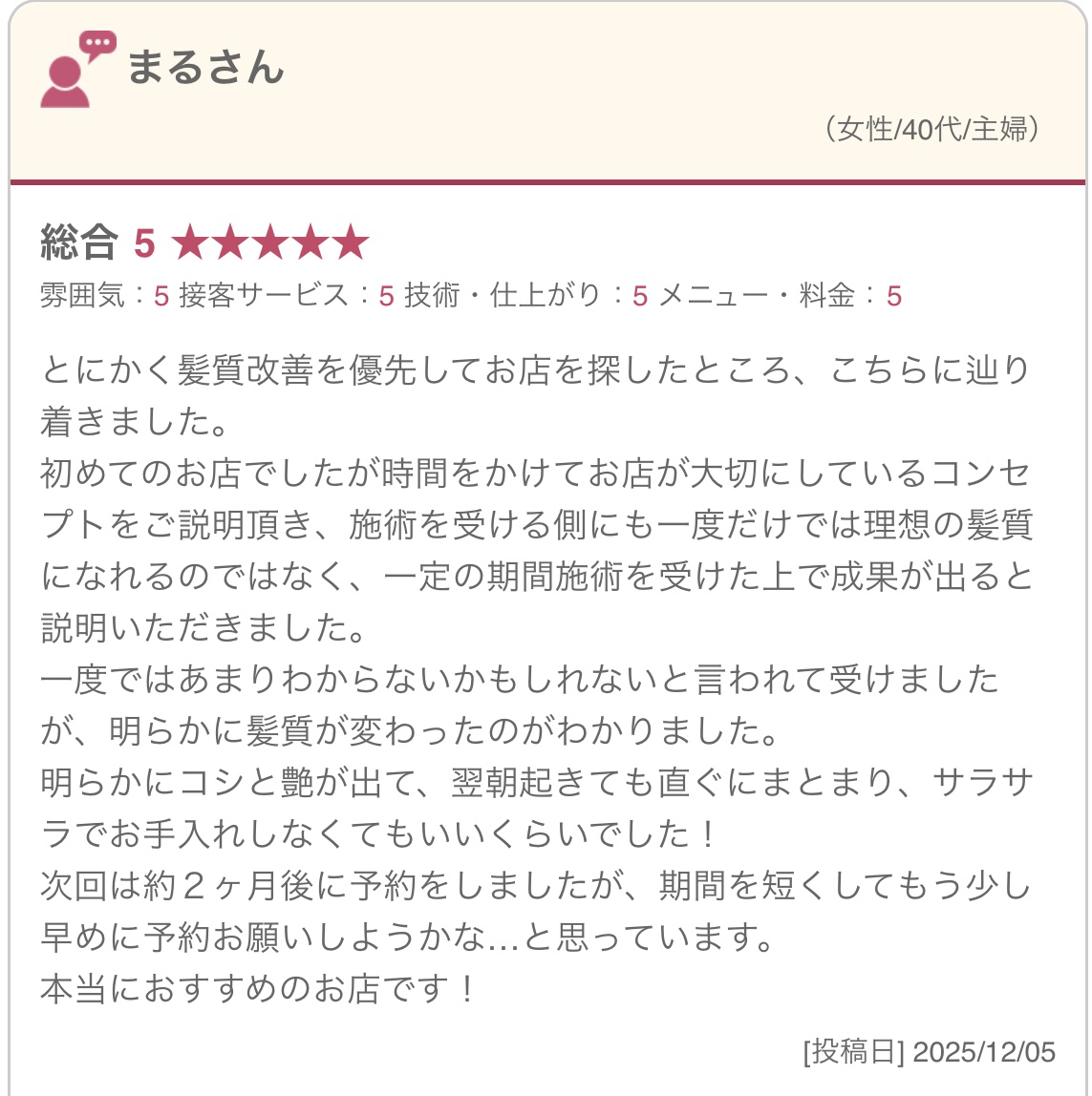 自然で美しい艶髪を実感されています。